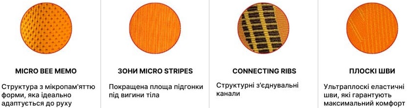 - Ергономічний крій, плоскі шви та еластичні матеріали створюють ефект “другої шкіри”, без натирань і обмеження рухів.