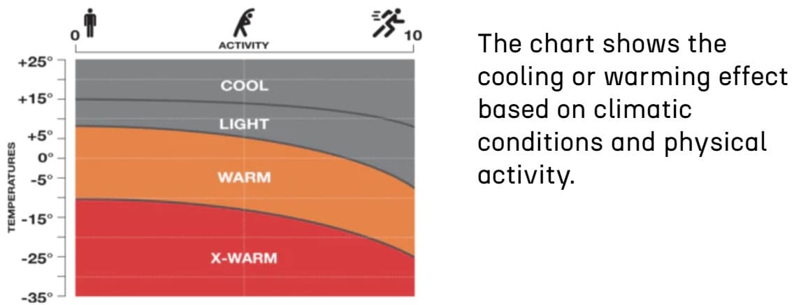 В суху, безвітряну, помірно холодну погоду або у приміщенні термобілизну можна носити як самостійний шар. Для складних погодних умов потрібна тришарова комбінація: термобілизна + утеплюючий + вітро- і водозахисний шари.