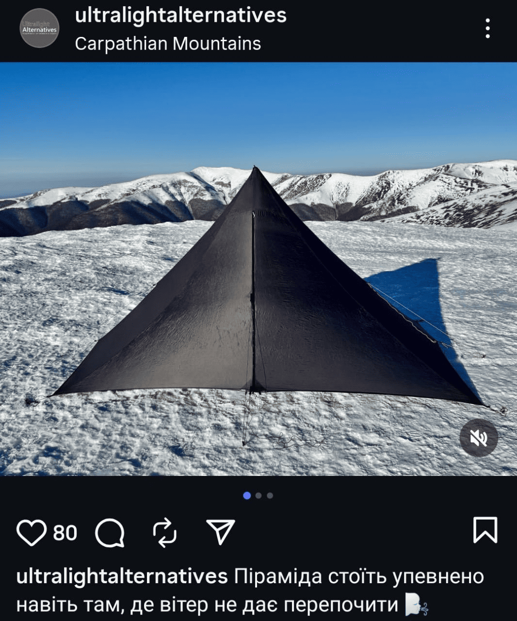 - Тент-піраміда XL. Створена в колаборації з Liteway. Збільшений простір всередині. Легко встановлюється на двох з’єднаних між собою трекпалицях. Вага з відтяжками й чохлом всього 470 г.