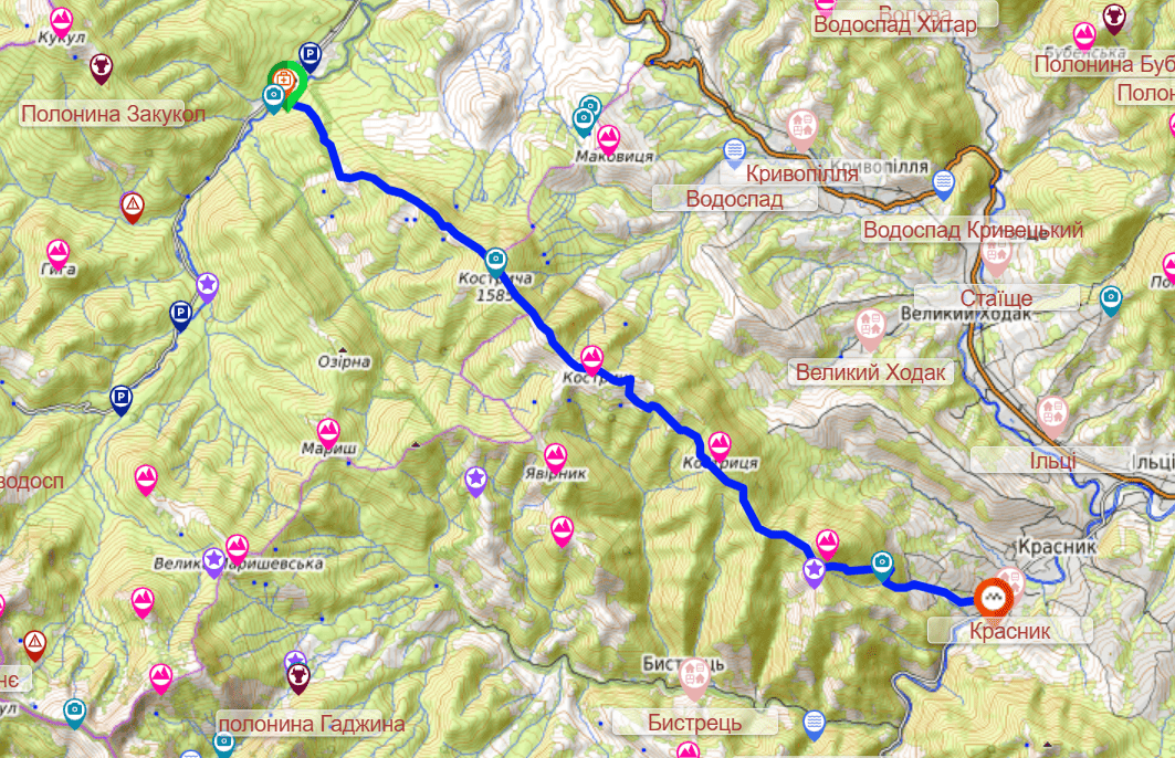 Маршрути на Кукул і Кострич
