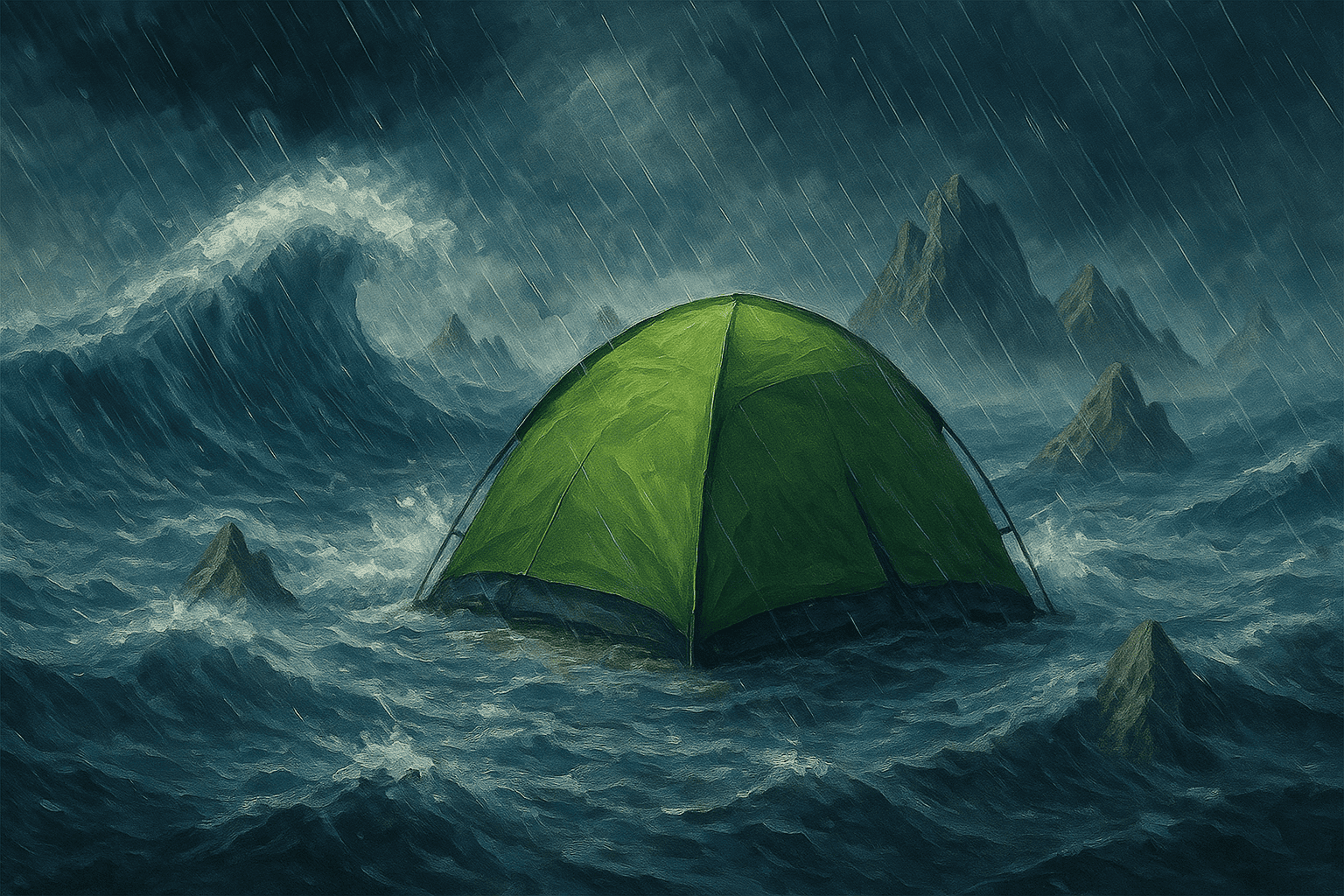 Готово! Можна відпочивати під медитативний стук дощу. Хай назовні хоч потоп, — якщо все зробив правильно і намет не протікає, всередині буде сухо й комфортно.