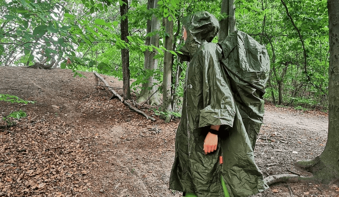- Дощовик або мембранка з капюшоном, непромокаючі штани й мембранні кросівки/черевики, перчатки для роботи з мокрим спорядженням.