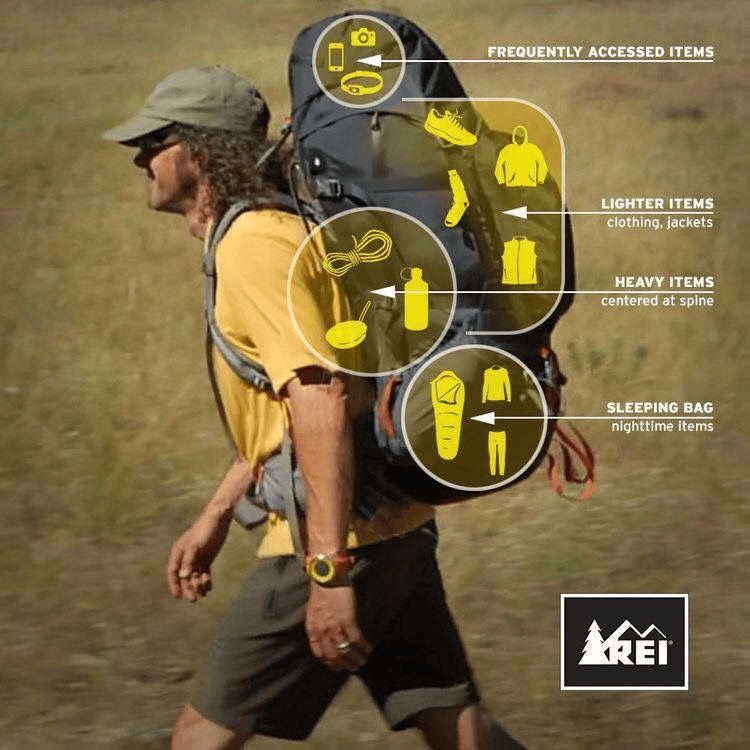 Складай речі так, щоб діставати у потрібному порядку. У швидкому доступі: дощовик, рукавички, рушник, стійки, тент, футпринт. Глибше: спальник, килимок і змінний одяг.