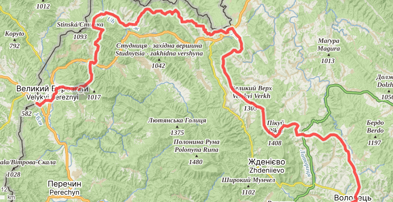 - Великий Березний → Воловець. Вододільний хребет