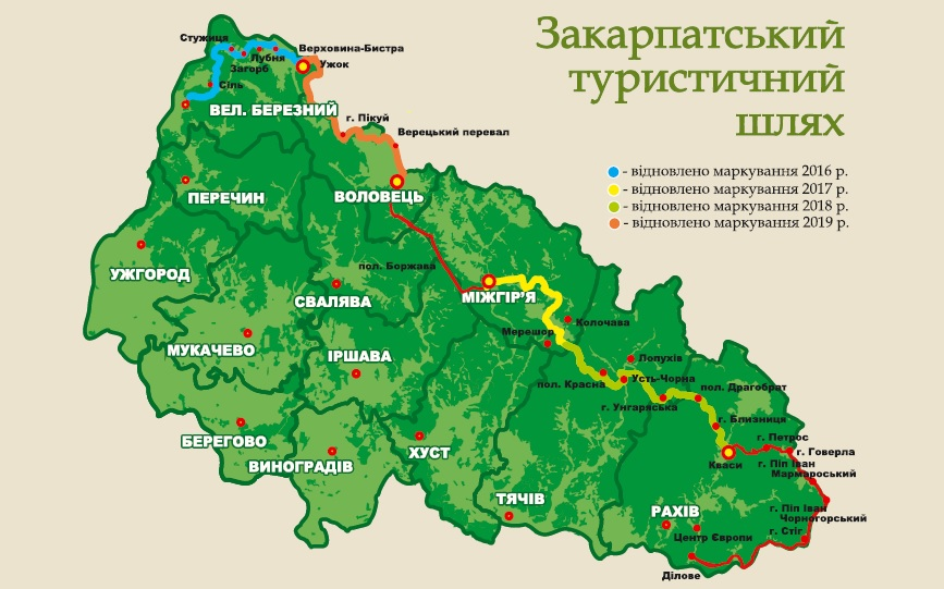 Закарпатський туристичний шлях починається у с. Великий Березний (Ужгородський р-н) і закінчується в с. Ділове (Рахівський р-н).